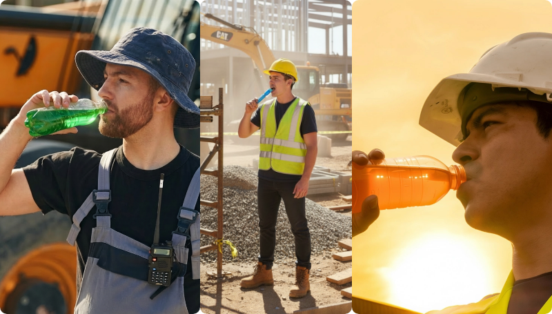 ● For long shifts in high temperatures, water alone isn’t enough. Electrolyte solutions are essential to replace the salts and minerals lost through sweating.