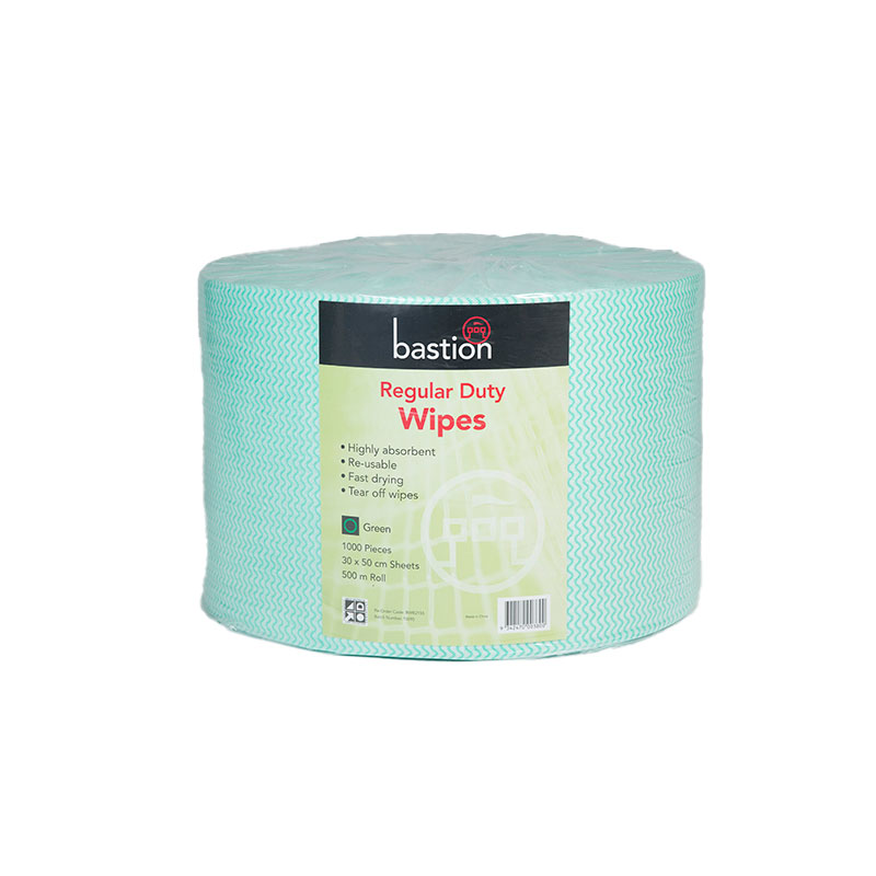 Bastion Regular Wipes, 500m Roll, 1000 Pieces, 30x50cm, Green