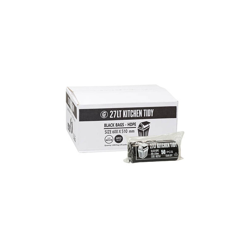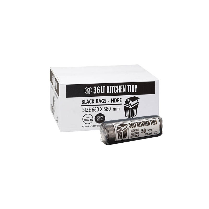 Black kitchen tidy bags come in medium and large. Ideal for lightweight waste containment in washrooms, kitchens, hotel rooms and offices.