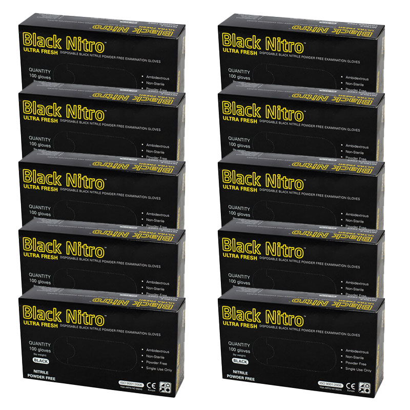 Ultra Fresh black nitrile disposable gloves are heavy weight and industrial strength for protection against unwanted and dangerous substances. Offering reliable safety compared to latex or vinyl, these gloves are suitable for many applications, including automotive, cleaning, hospitality and healthcare.