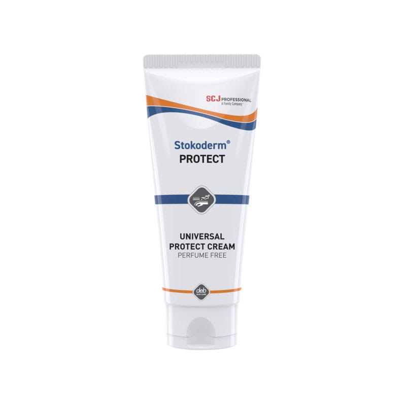 Deb Stokoderm® Universal Protect Cream in a convenient 100ml tube. A general purpose pre-work cream designed for professional use to help protect the skin against light to moderate exposure to water and non-water based workplace contaminants.