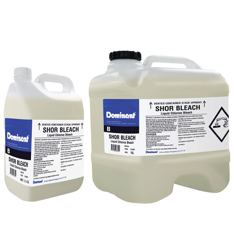 Liquid bleach with 4% chlorinated and added detergents for enhanced cleaning. Shor Bleach has many applications in the laundry, kitchen or bathroom.