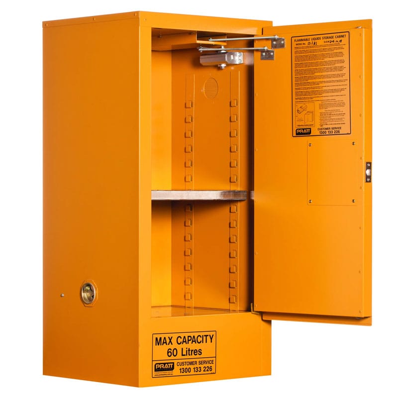 The Flammable Liquid 3 Storage Cabinet is designed as a everyday safe storage unit for liquid flammable goods. It is fully compliant with legislative construction requirements. Featuring clear descriptive safety signs and safety directions. The Flammable Liquid Storage Cabinet is designed with built in flash arrestors and vent openings. The state-of-the-art powder coat finish provides a highly durable finish and the stainless steel pin continuous hinge is strong and reliable. The Flammable Liquid Storage Cabinet also features a clever sequential door closing system. This industrial storage cabinet is the ideal way to store chemicals safely in your business.