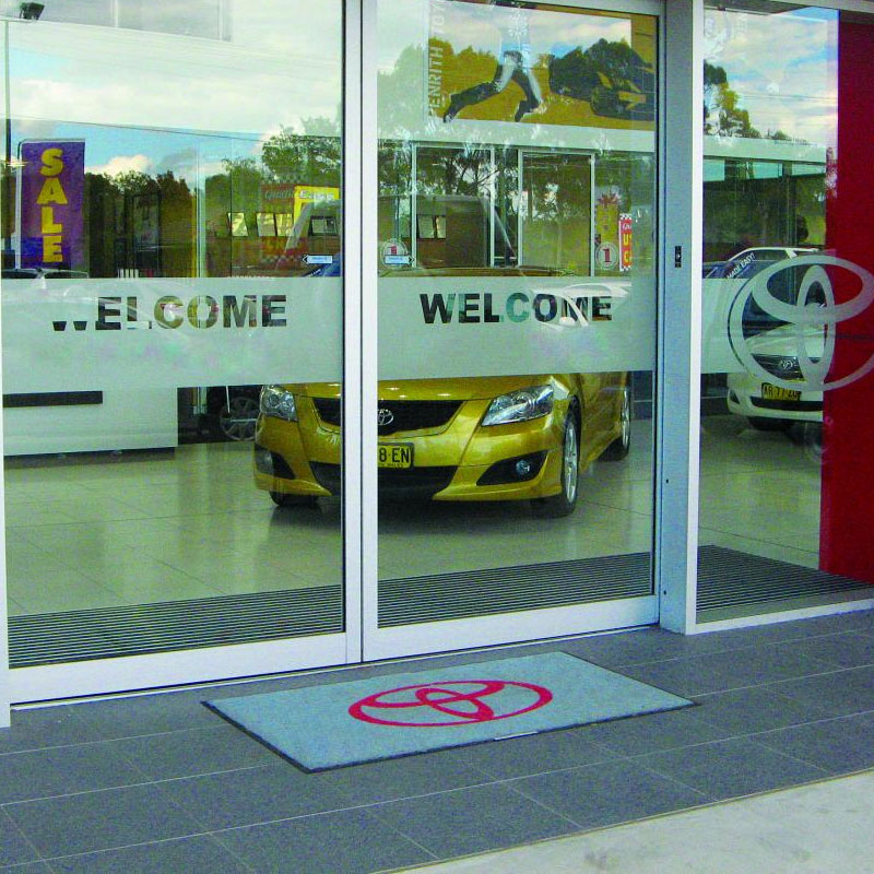 Our logo mats are a nitrile rubber-backed, nylon topped mat for low to medium traffic entrances. A great way to make an on your customers as they walk through the door.