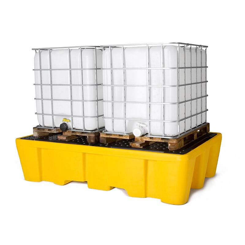 Oil, Chemicals, or Waste liquids in drums need to be safely bunded by a spill pallet. IBC Spill Pallets help make workplaces safer, help prevent run out into drains and waterways. IBCSpill Pallets are constructed from heavy-duty polyethylene, which does not rust or corrode. It will withstand the knocks and scuffs of the industrial environment. Designed with removable grates, and an easily forkable design. Polyethylene IBC Spill Pallets are available in single or double IBC bund.