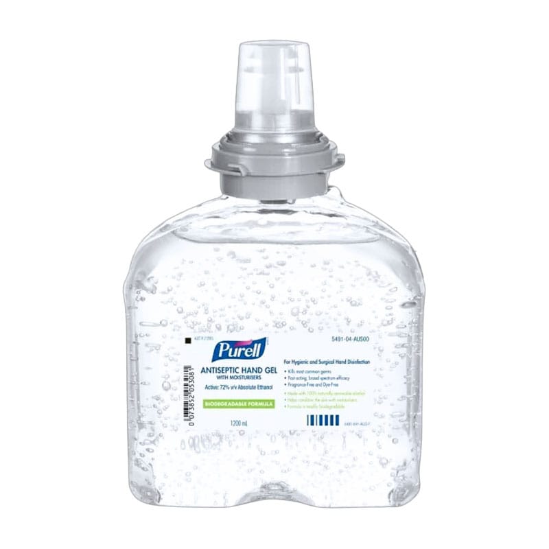PURELL® Antiseptic Hand Gel in a 1.2L refill pod. A mild alcohol-based sanitiser that kills 99.99% of common germs with added skin conditioners for high use. ARTG registered for use as a waterless surgical scrub.