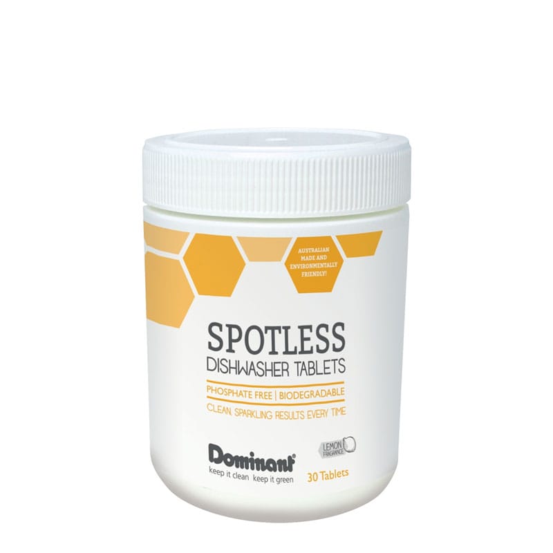 Spotless Dishwasher Tablets provide enhanced performance clean for domestic and commercial dishwashers. Phosphate free and biodegradable.