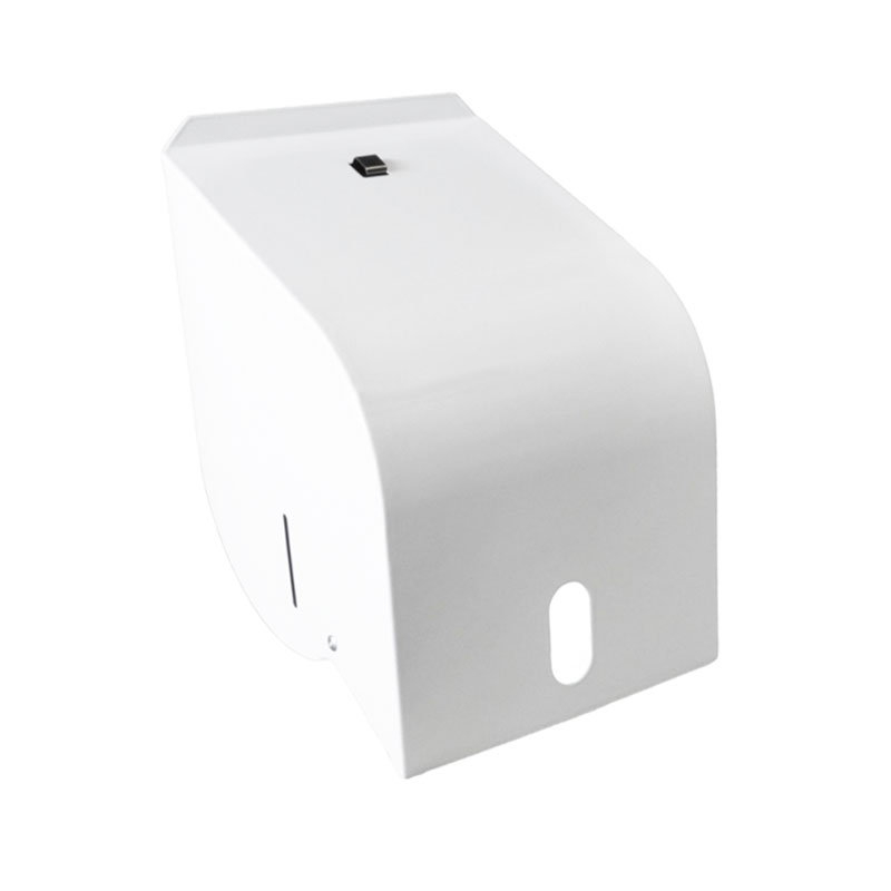 The white coated metal paper roll towel dispenser has a sleek and modern design. This dispensers suits most standard roll paper towels.